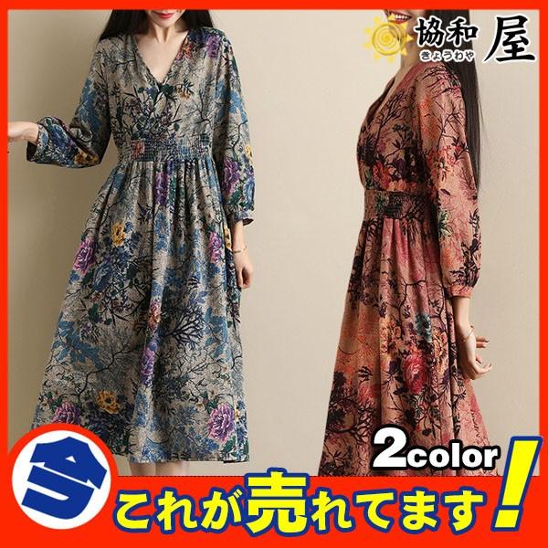 他店圧倒価格 最安値に挑戦 裏起毛ワンピースレディース 大きいサイズのレディースワンピース きれいめワンピ 秋冬 長袖 体型カバー 防寒 ロング丈 柄ワンピース K0 目玉商品 Mawaredenergy Com